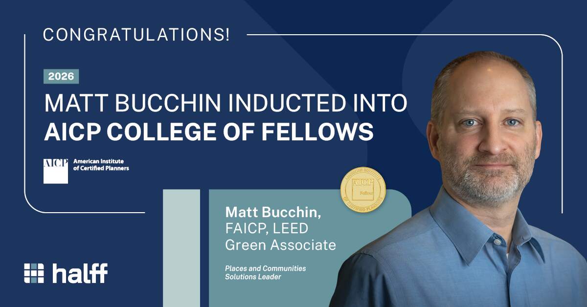 AUSTIN, Texas — Halff’s Places and Communities Solutions Leader Matt Bucchin, FAICP, LEED Green Associate, was inducted into the American Institute of Certified Planners (AICP) College of Fellows.